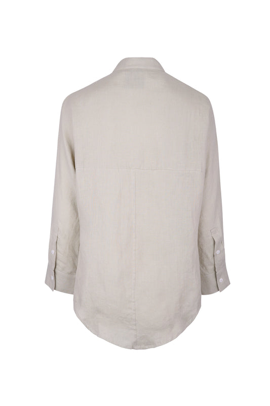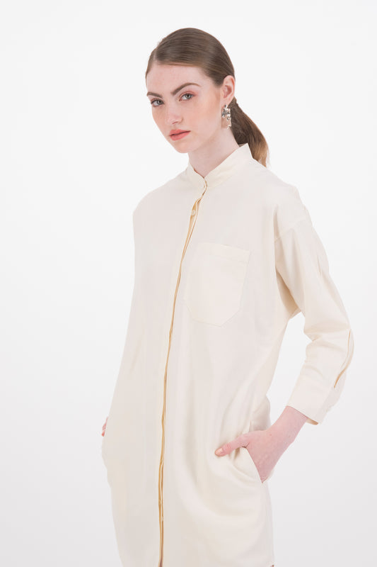 Vestido camisero con mangas estilo kimono de lino y seda de Sigma