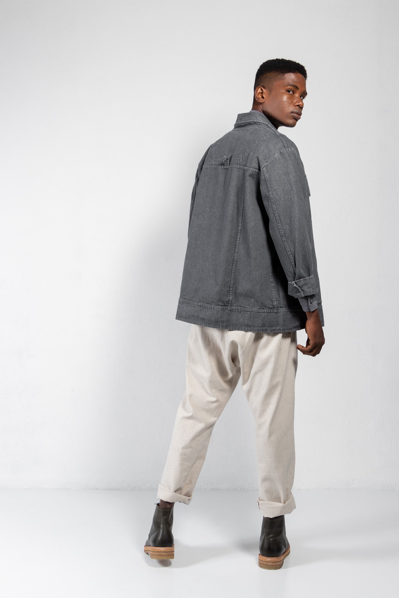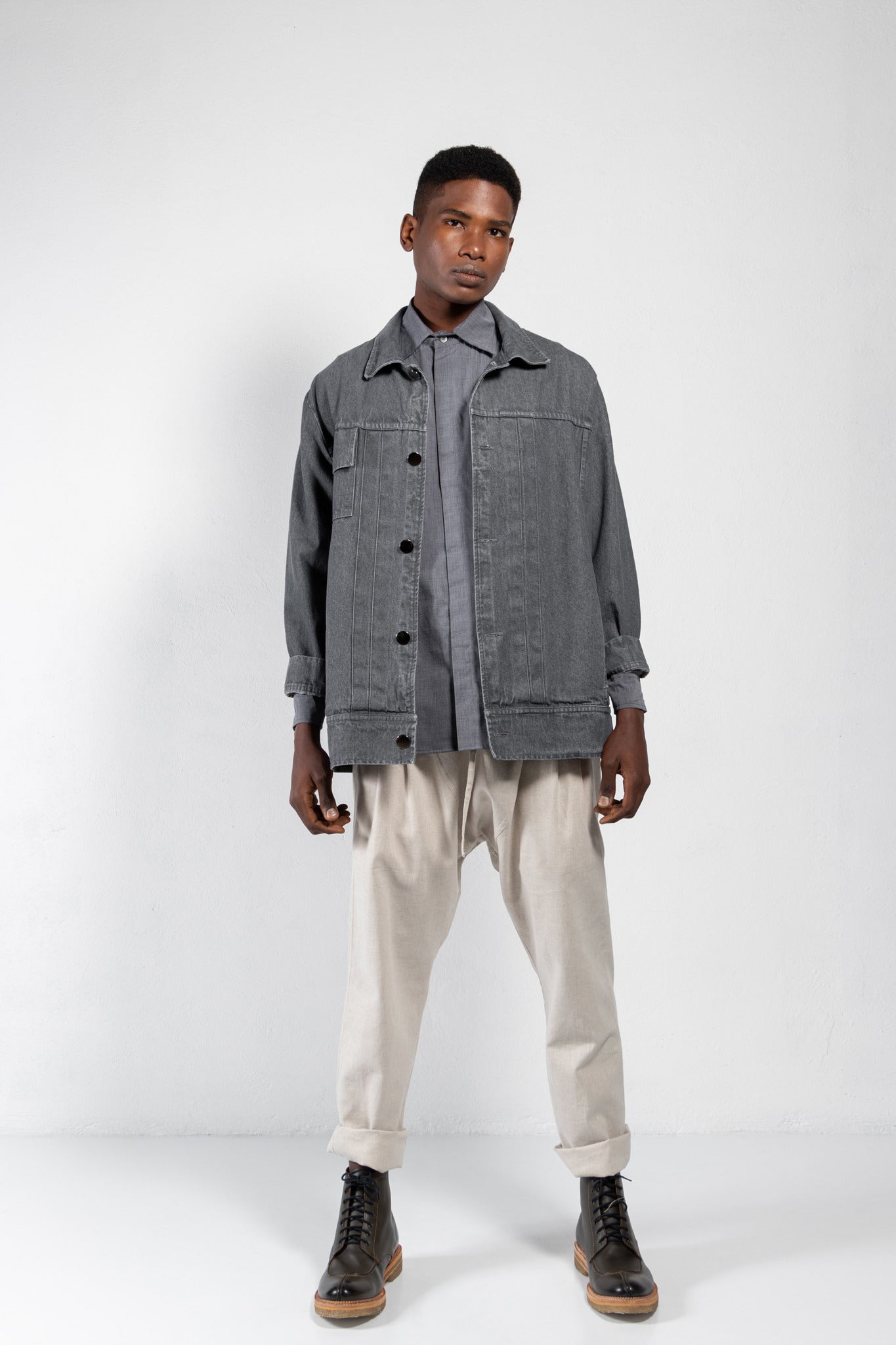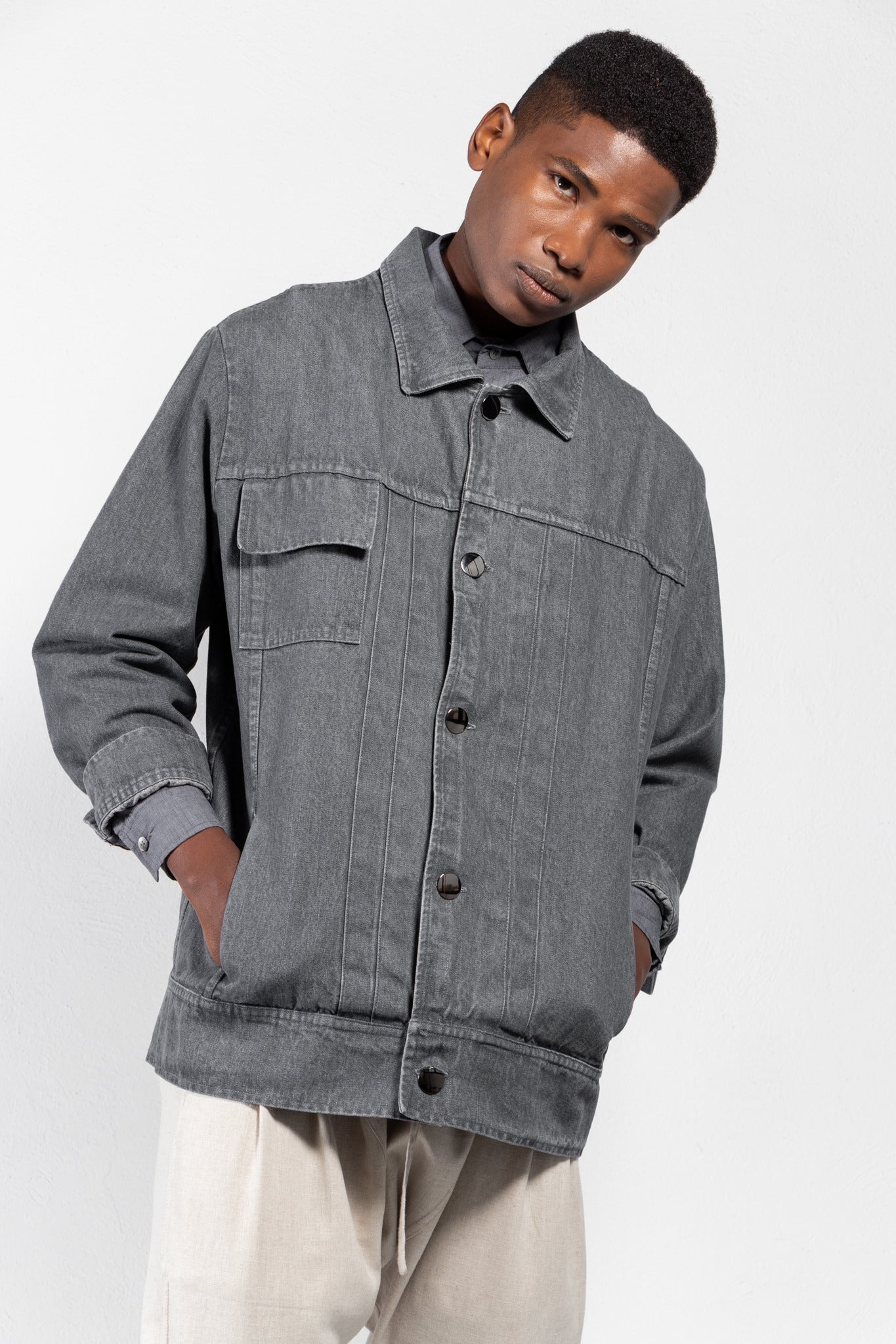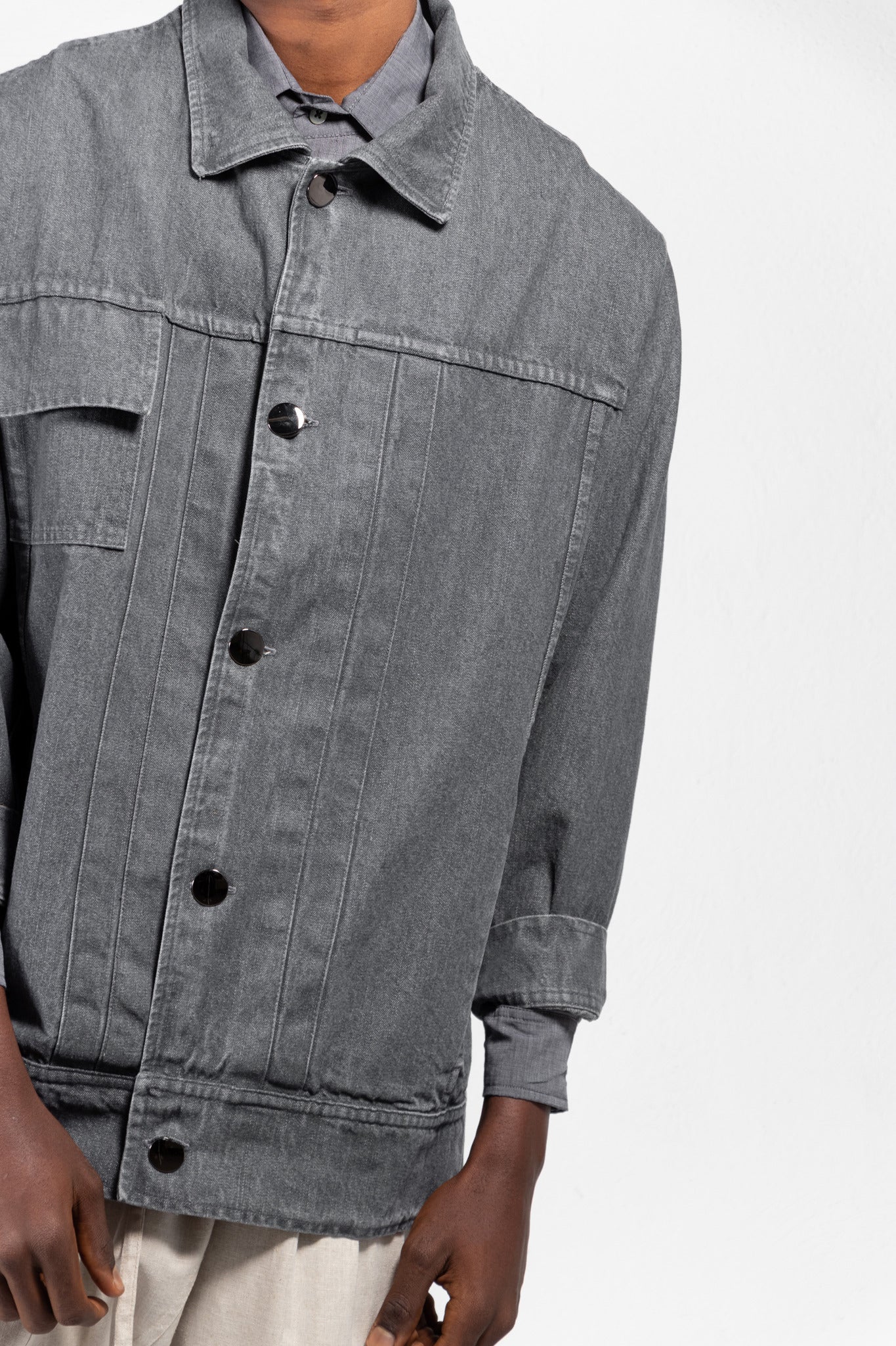 Chaqueta vaquera lavada con pliegues en el frente Plúmula