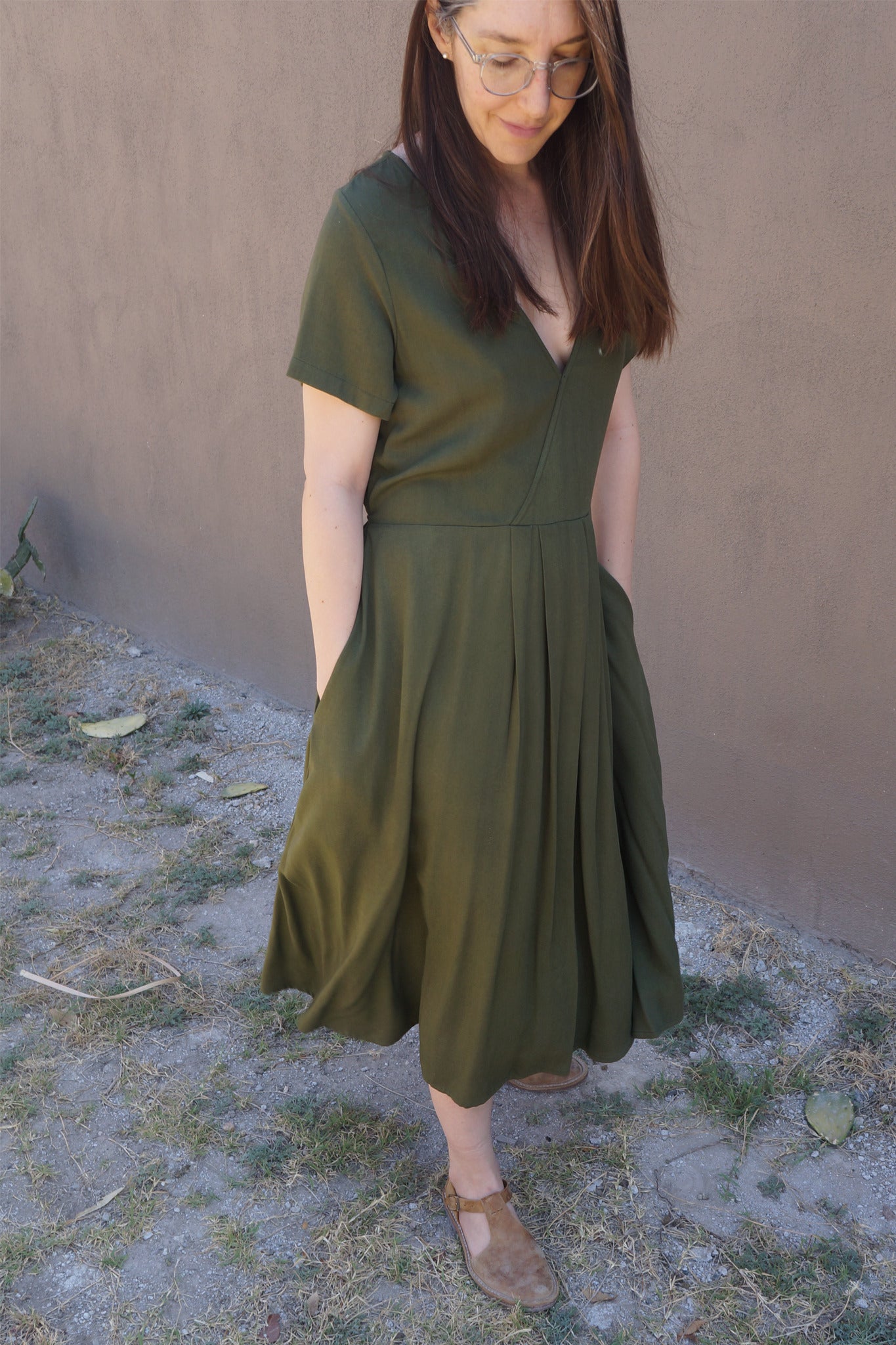 Rubio V-Neck Pleated Waist-Tie Midi Dress