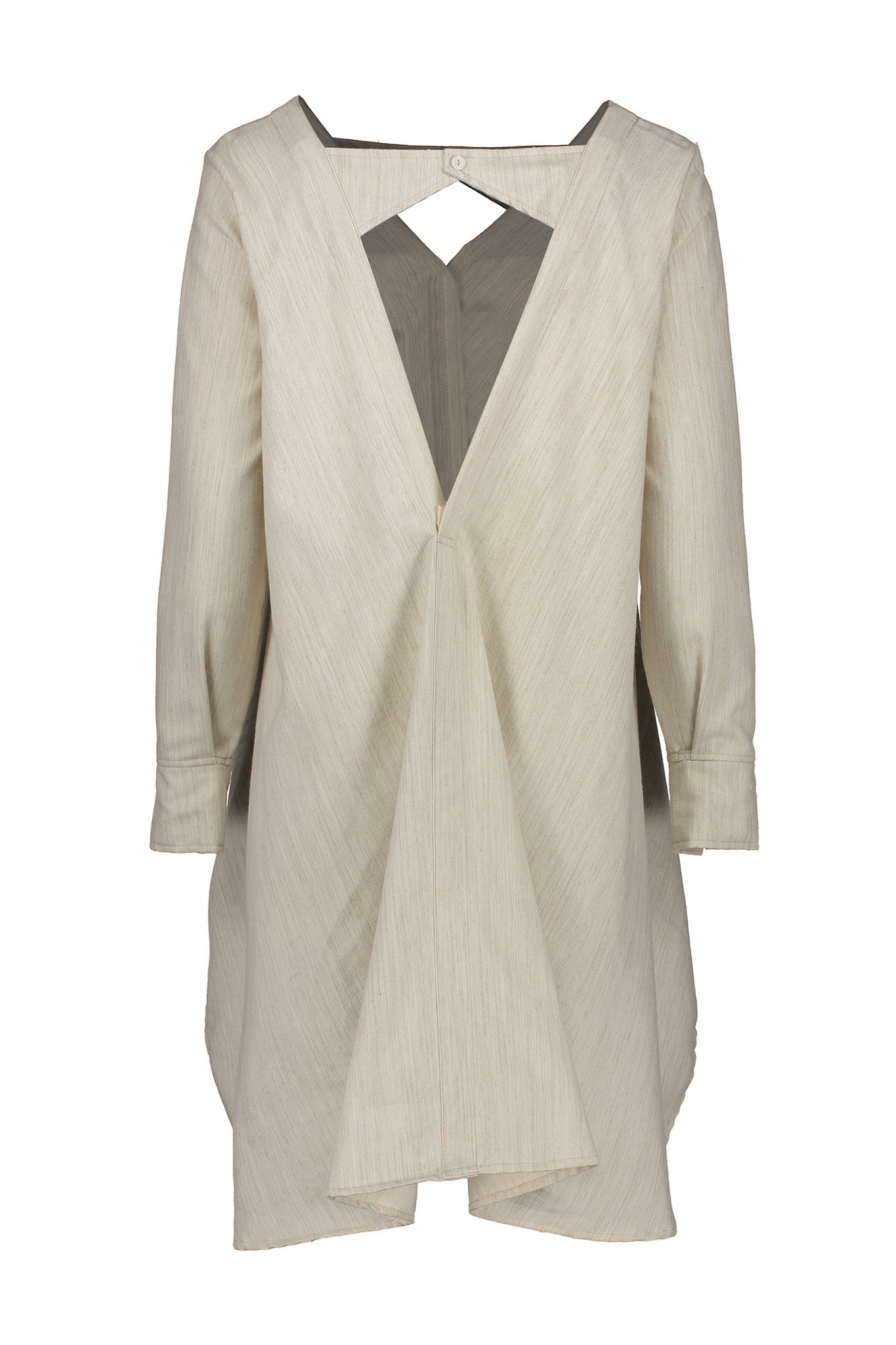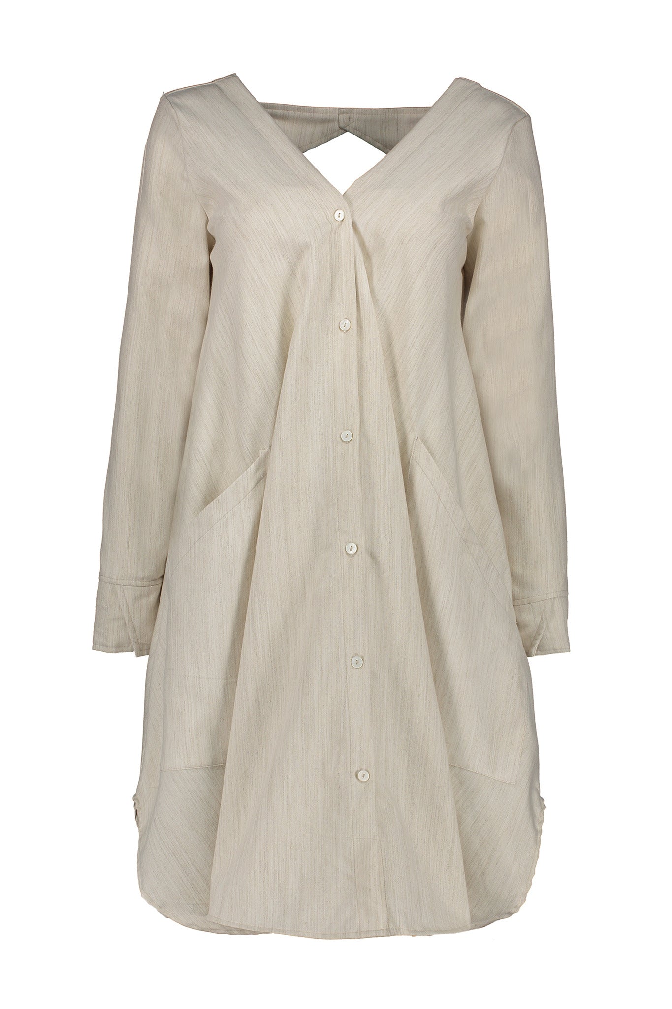 Open back long sleeved shirt dress in a soft melange linen blend fabric.