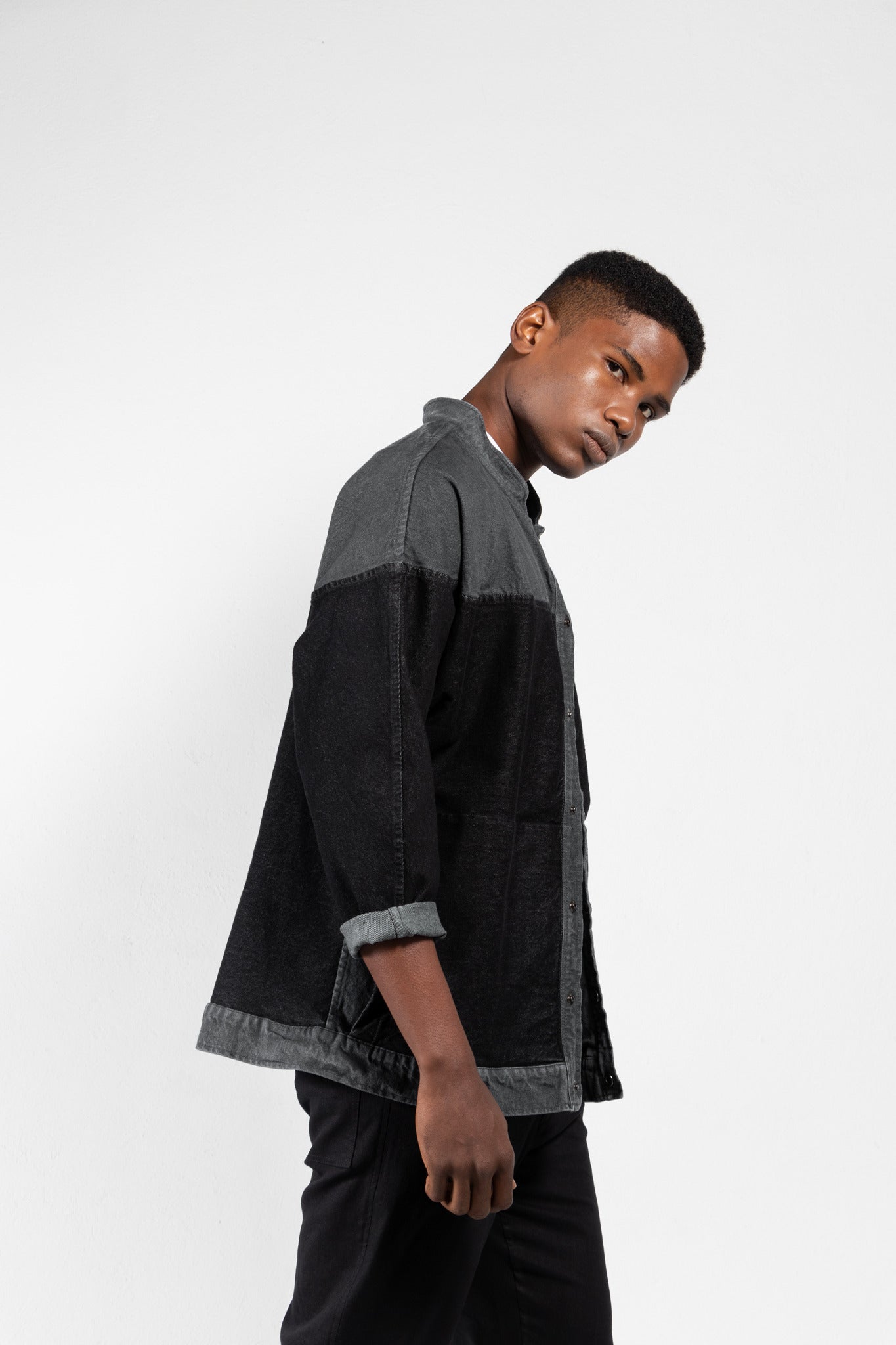 - Contrasting yoke, front placket and waistband