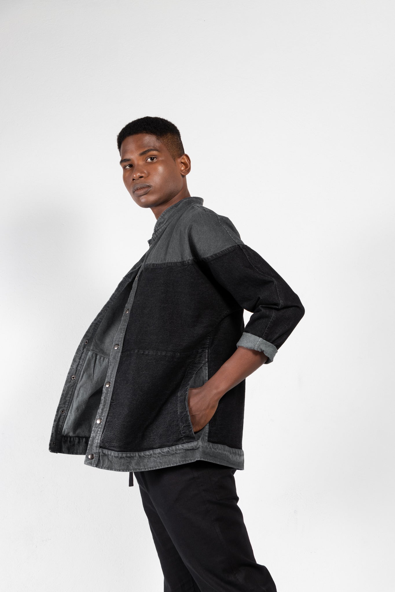 - Front snap-button closure
