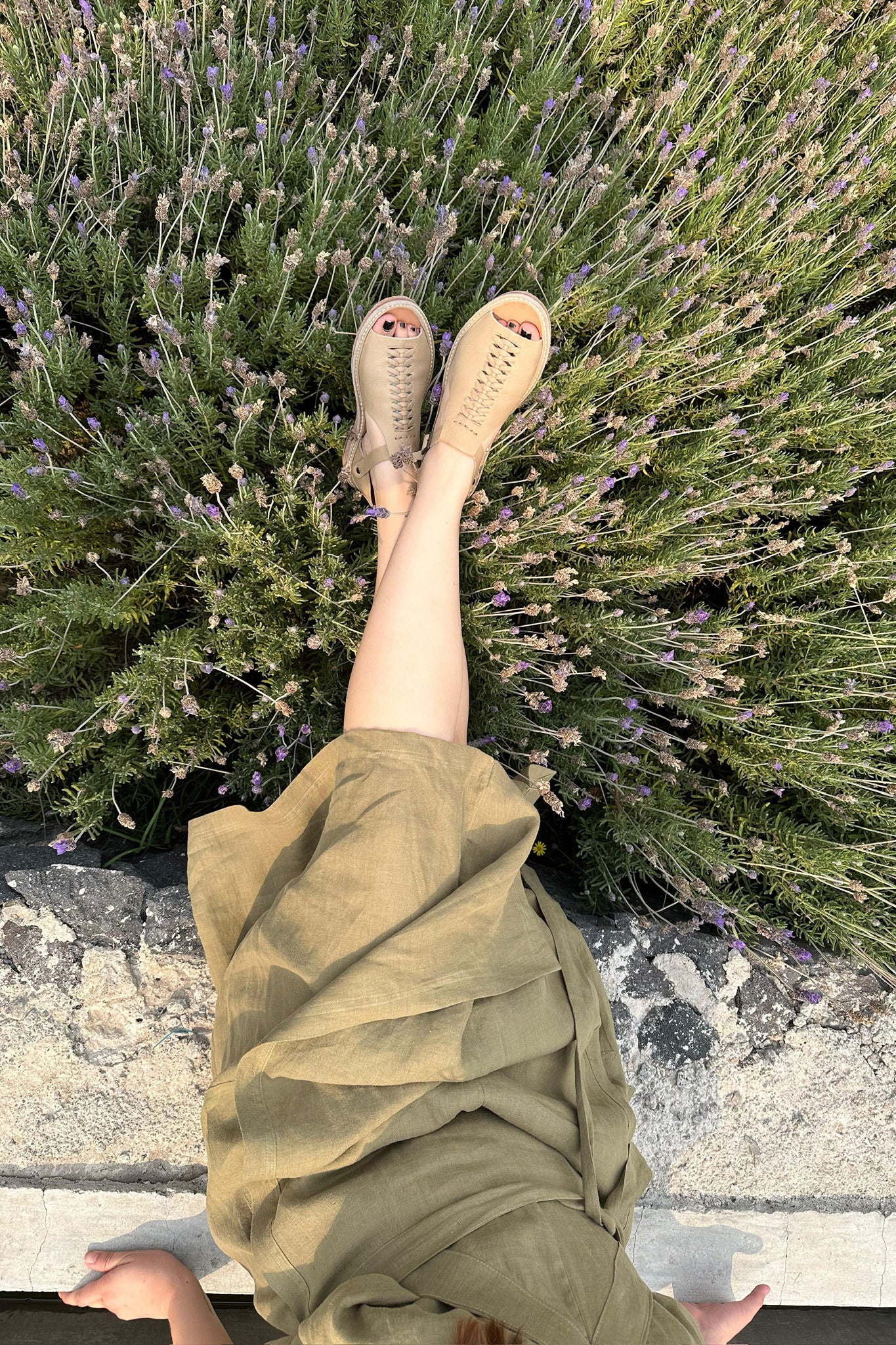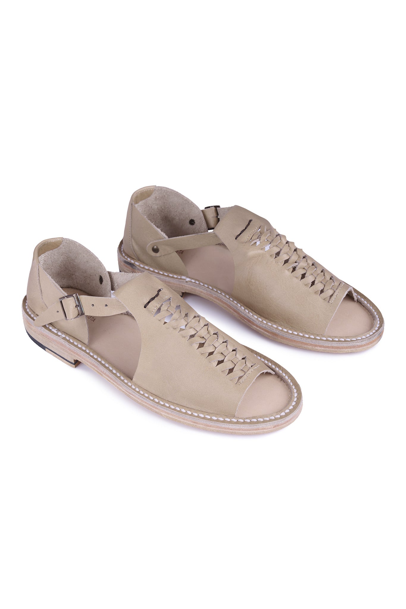 Open, rounded toe sandal in smooth vegetable tanned leather with handmade details and an artisanal feel.