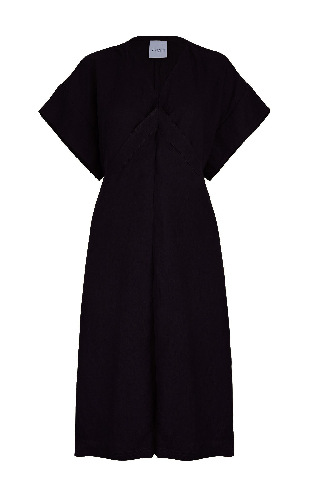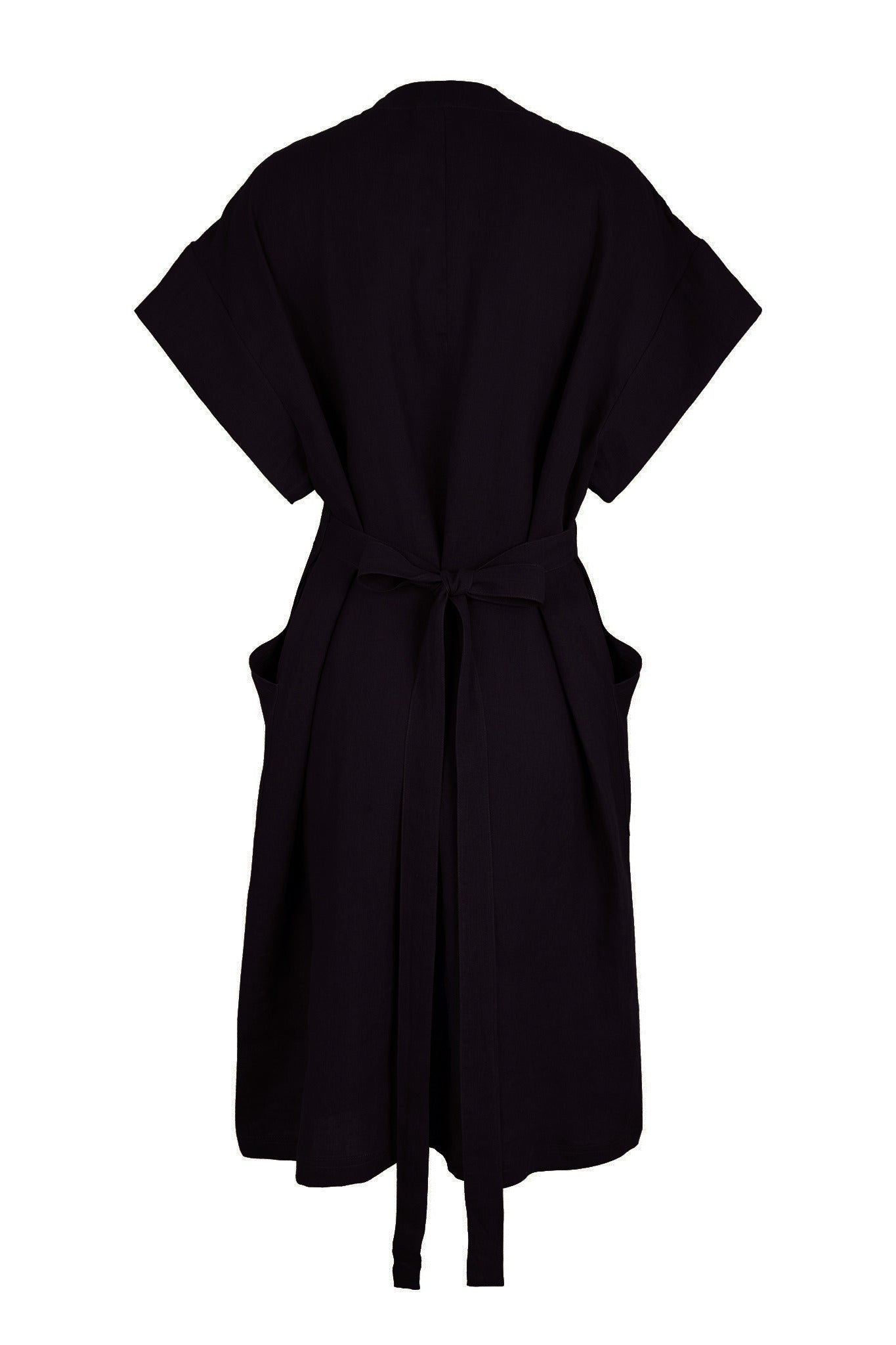 Comfortable and versatile mid length wrap dress in soft, breathable hemp fabric.