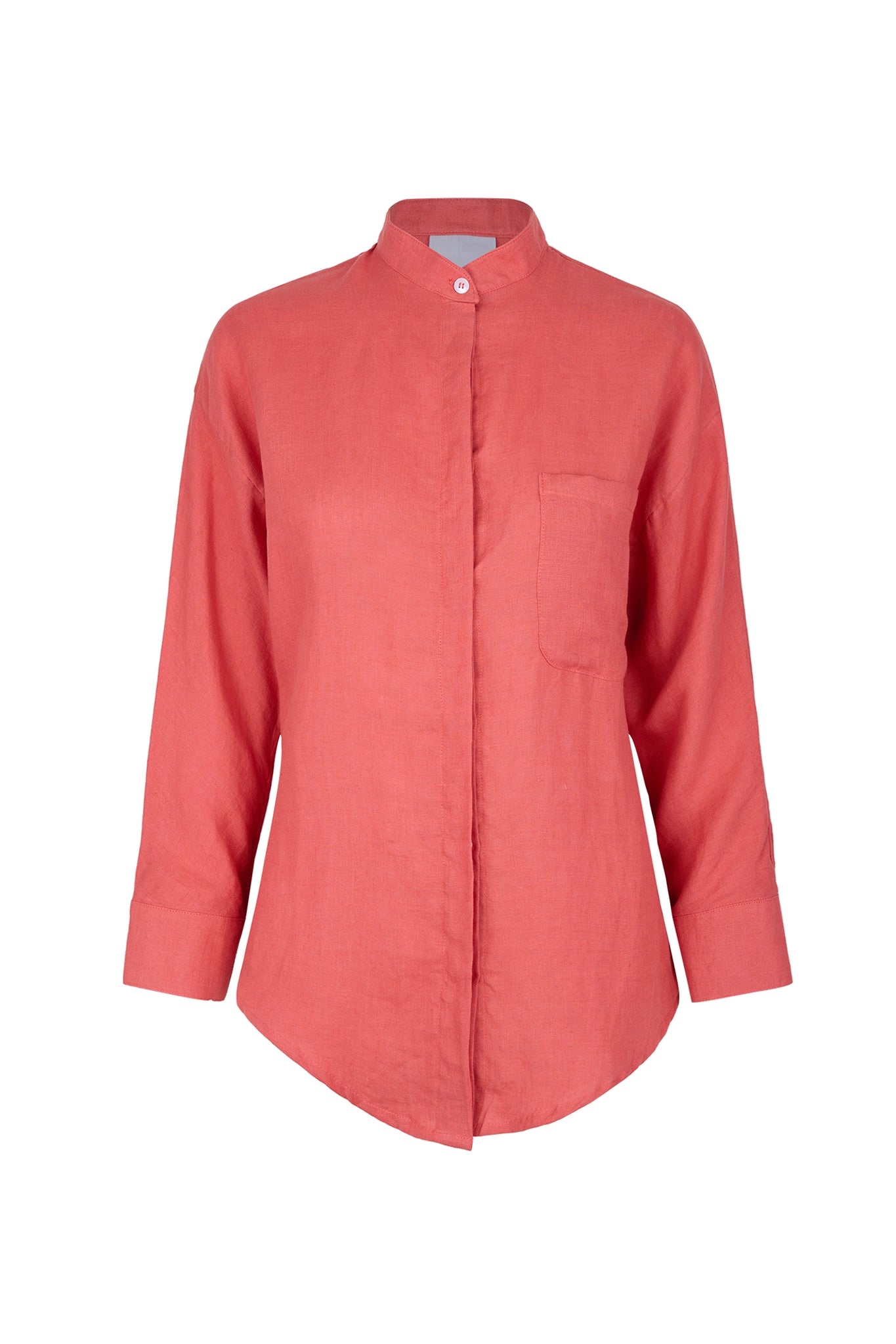 Relaxed fit kimono sleeve hemp shirt with a mandarin collar for the perfect casual look.
